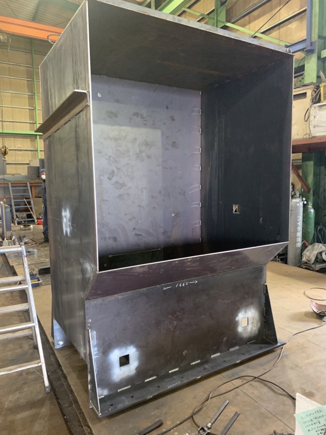 工場にてホッパー製作
